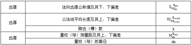 表1-142齒厚的向種檢驗方法在表格中的标注示例