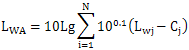 B.2當使用1/3倍頻帶聲功率級計算時 ,上式jmax=21,Cj由表B2給出。
