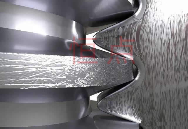 螺旋齒輪(交叉斜齒輪),它們的運動以楔形或螺旋爲主,齒面高度滑動,易於裝配,具有相同的法向徑槽,它們可以朝同一個方向,也可以朝相反的方向 。