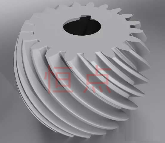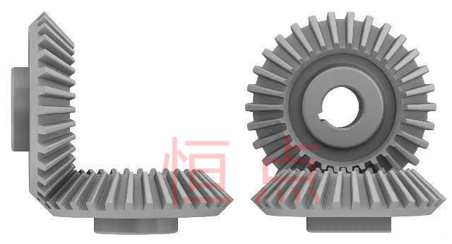 螺旋錐齒輪,它們的接觸面比直齒錐齒輪大 ,它們可以切割的軸向運動,可以在低於傳動軸速度下工作。