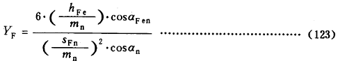 式(144)适用於标準或變位的直齒輪和斜齒輪。大 、小輪的YFa應分别確定。